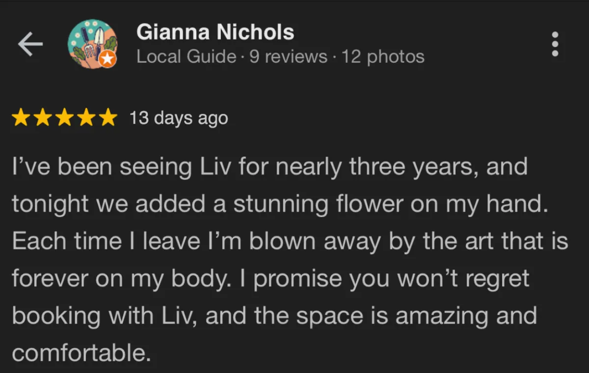 You’ll only be asked to leave a deposit after your free consultation is finished, once you’ve agreed on the design, feel ready to move forward, and have received a personalized quote from your artist.